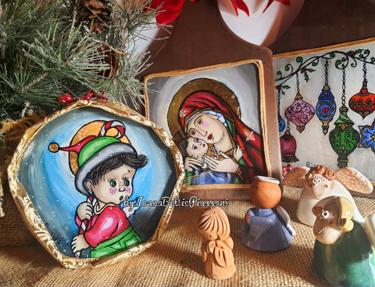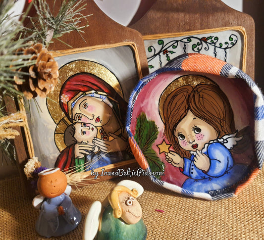 În interpretarea mea, iconografia tradițională se împletește cu viziunea personală. Se creează un pod între sacrul ancestral și viața cotidiană, transpunând momente zilnice în scenarii în care îngerii sunt protagoniști.