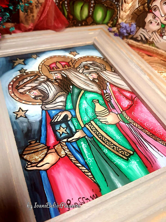 Magii de la Răsărit: Iconografie cu Aur și Tămâie pe Sticlă
