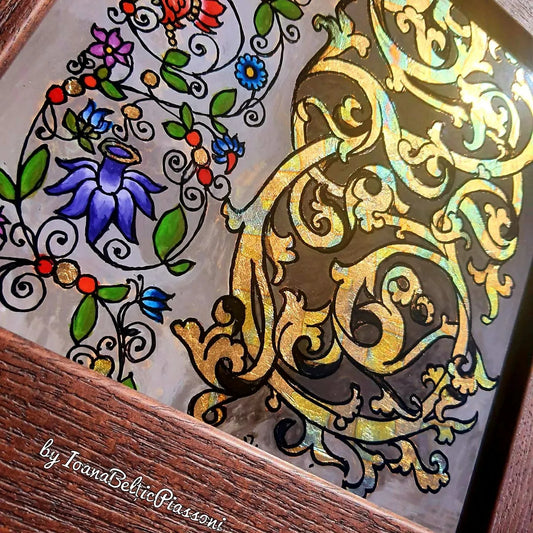 Strălucirea Manuscriselor Iluministe: O Lucrare Pictată pe Sticlă cu Foita de Aur